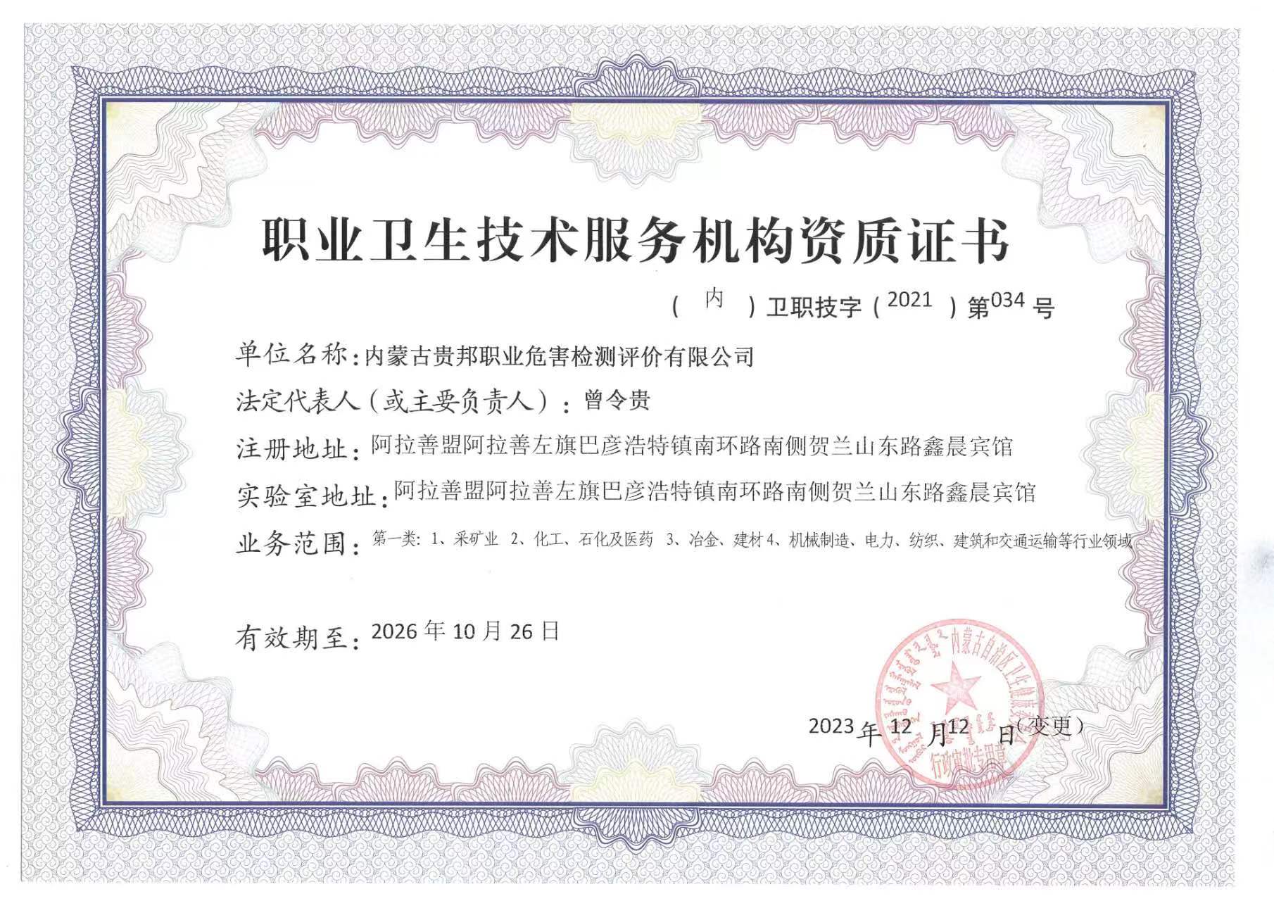 內(nèi)蒙古貴邦職業(yè)危害檢測(cè)評(píng)價(jià)有限公司(m.17lvtu.com)版權(quán)所有 地址:阿拉善盟阿拉善左旗賀蘭山東路加氣站南側(cè)鑫晨賓館一樓 24小時(shí)熱線:18947252199 蒙ICP備:蒙ICP備21006705號(hào)-1 公安備案號(hào):50011802010212